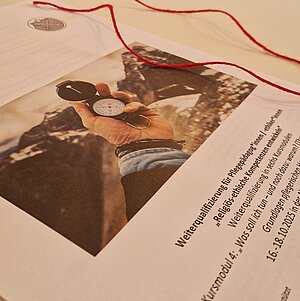 Der Samstag bot zusammen mit der Referentin für Fachschulen einige Stationen, um Zeit und Raum für offene Fragen und die eigene Auseinandersetzung mit dem Bildungsplan für REK/RU, dem eigenen Lernweg und der Missio canonica zu geben. Durch das vertiefte Lesen der Missio-Ordnung wurden neue Zugänge für die Kolleginnen und ihr Wirken an unseren katholischen Pflegeschulen sichtbar und das oft diffuse Gefühl angesichts einer Missio-Beauftragung konnte in einem anderen Licht gesehen werden: Missio als Stärkung und als eine Verbindung zwischen Diözese und Lehrkräften.